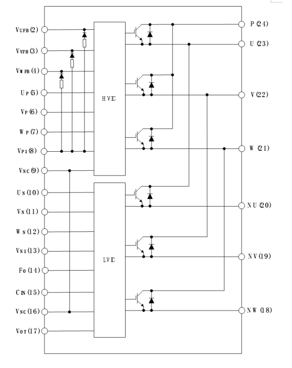 图1巨风半导体 DIP24 IPM内部等效电路图