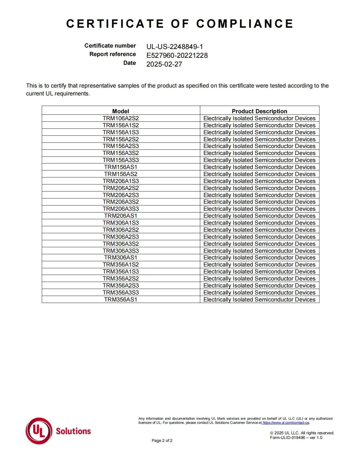 巨风半导体DIP24封装IPM模块顺利通过UL1557:2018标准规定的各项测试,获得UL公司依据标准颁发的UL1557认证证书(File No. E527960)。